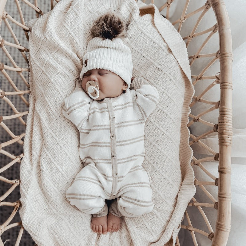Our knitted blankets are the perfect excuse to snuggle up with your little one. Match them along with one of our Sand Gingham Fitted Cot Sheets for the most beautiful natural nursery.
