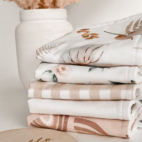 Our Mystery wash cloth Packs are very popular for those trying to keep their nappy bag organized and stylish. Pair them along with our Burp Cloths and keep in mind our Baby Jersery Swaddle Wraps available in over 30 prints.