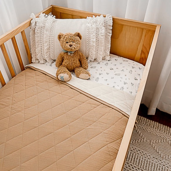 Introducing the Snuggly Jacks Camel Cream Cot Coverlet
