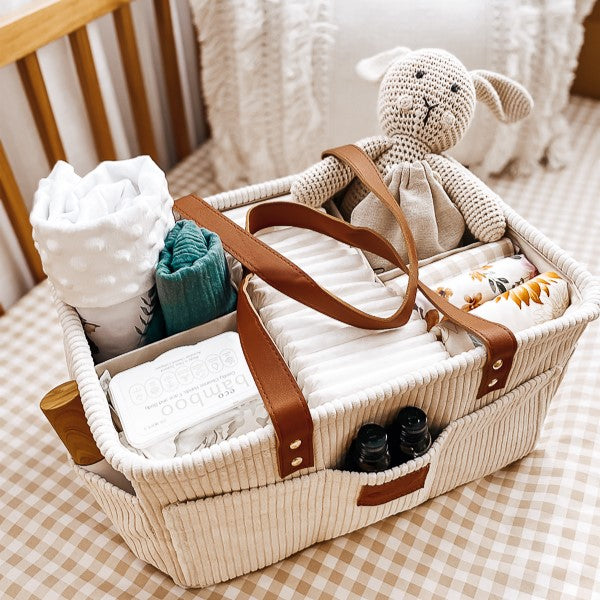 Experience the perfect blend of practicality and style. Order your Cream Corduroy Nappy Caddy today and embrace the ease and elegance it brings to your everyday life.