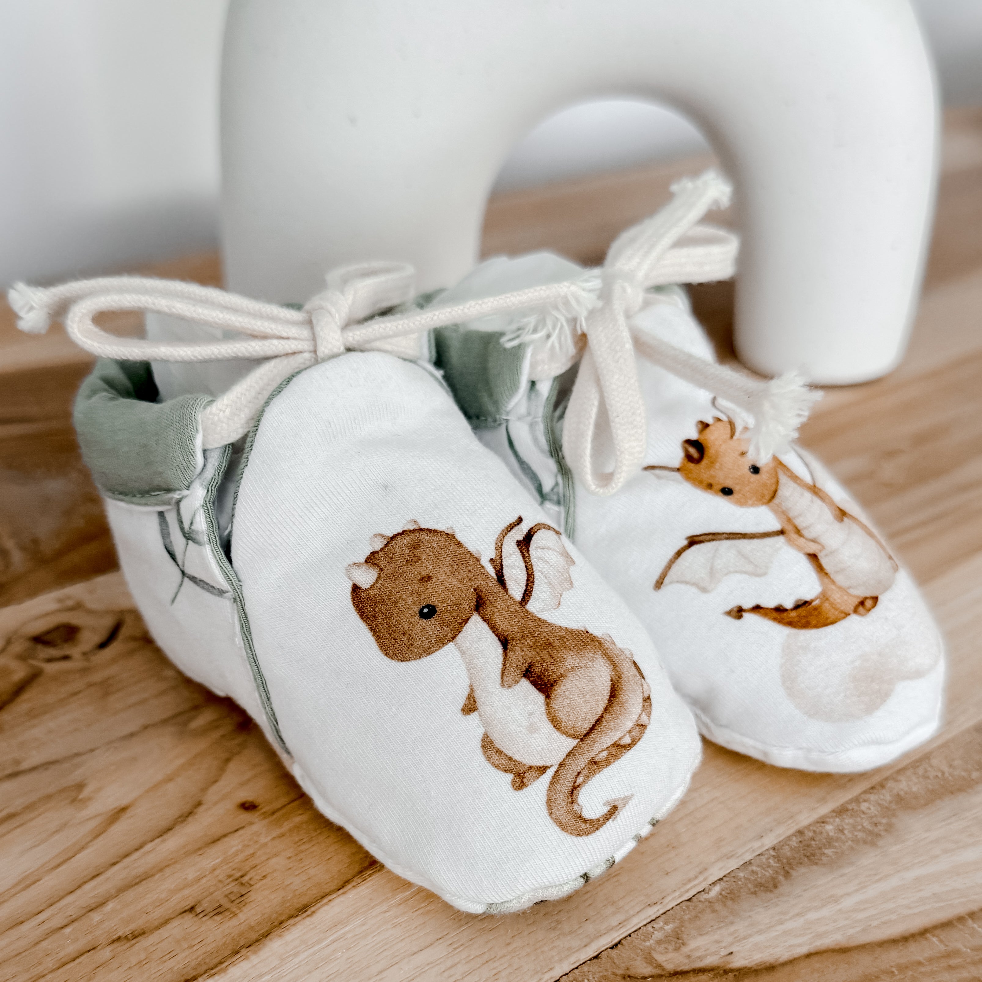 Keep your baby’s feet warm and snug with our whimsical Mystique Baby Booties. Crafted from ultra-soft, 100% GOTS approved organic cotton, these handcrafted booties feature our magical dragon-themed Mystique print, making them as stylish as they are practical.