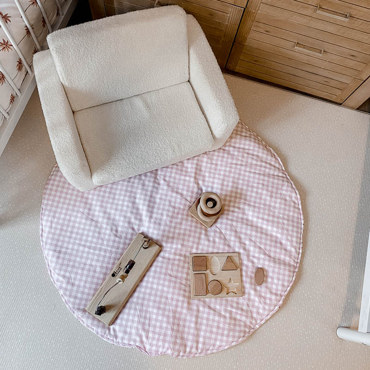 ~An understated classic to suit any decor, the Peachy Pink Gingham playmat is a non-negotiable when it comes to playtime and tummy time for your little love. ~