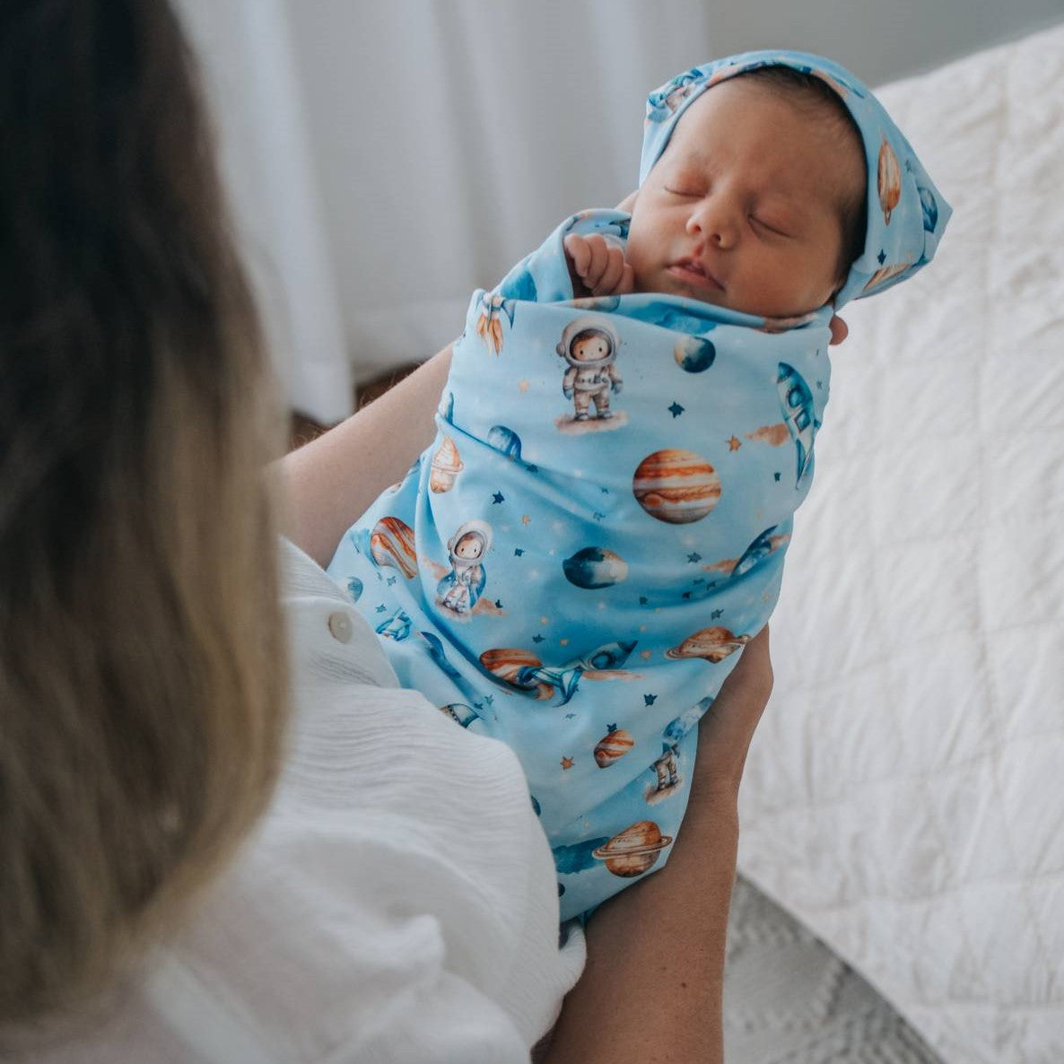 Space Rockets Jersey Swaddle Stretch Wrap & Beanie