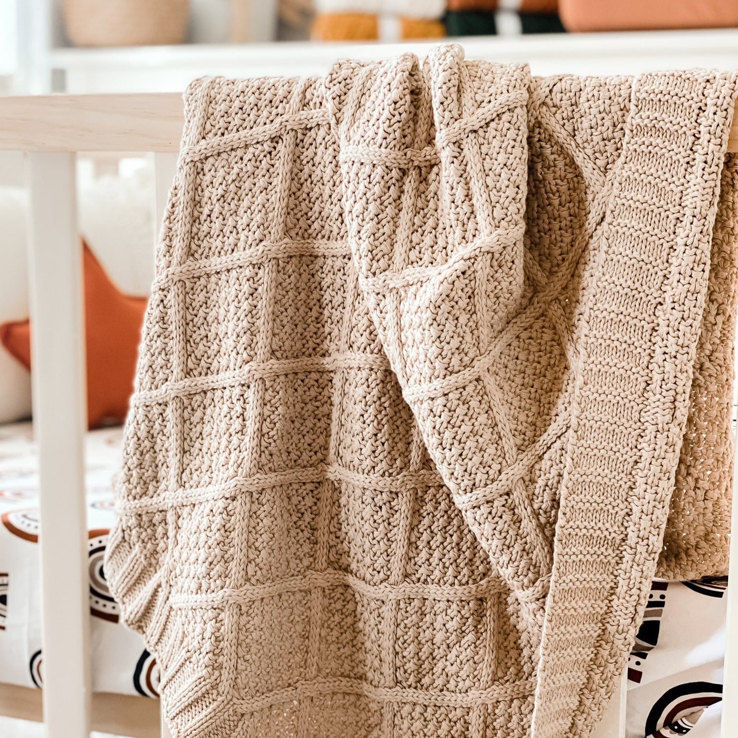 Our knitted blankets are the perfect excuse to snuggle up with your little one. Match them along with one of our Cream Corduroy Nappy Caddy for the most beautiful natural nursery.