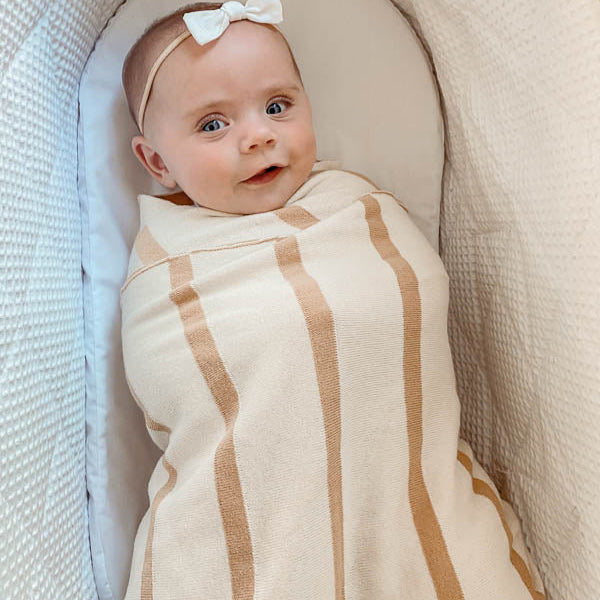 Toffee Stripe Organic Knitted Blanket