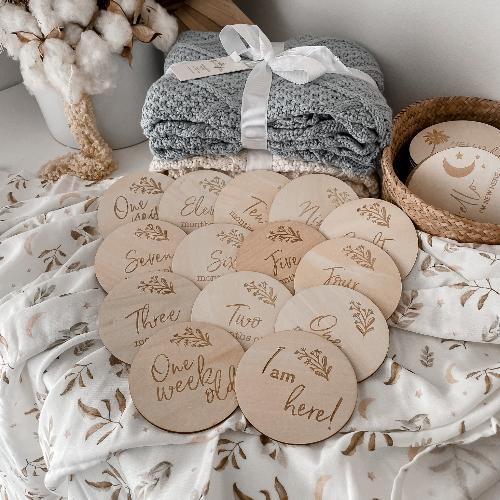 Capture your newborn baby’s first week, month and year with our gorgeous Wooden Baby Milestone Disc set to cherish forever and share your baby’s first special moments with your family & friends. Pair perfectly with any of our wraps or fitted sheets.