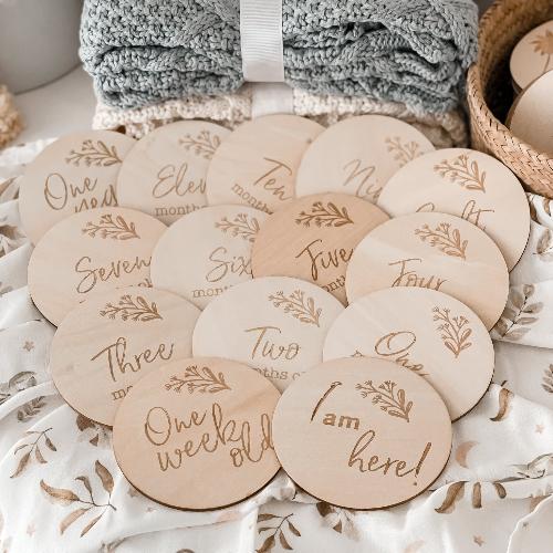 Your Snuggly Jacks Wooden Baby Milestone Disc Set Includes: